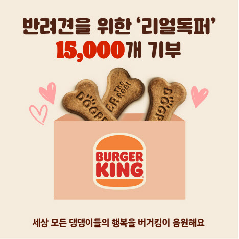 버거킹은 반려견과의 행복한 순간을 공유하는 SNS 이벤트를 4월 2일까지 진행합니다. 추첨을 통해 소노펫 클럽앤리조트 상품권과 사진 액자, 크로노 디럭스 강아지 유모차와 브리지독 POT 강아지 밥그릇 등을 증정합니다.