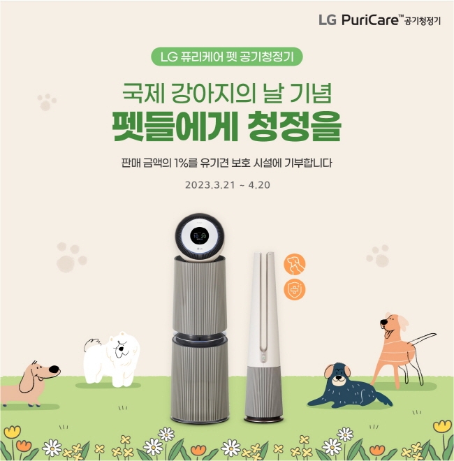 LG전자는 국제 강아지의 날을 기념하여 LG전자 공식 홈페이지에서 특별 기획전과 기부 행사를 진행합니다. 더 많은 강아지들이 사람과 함께 청정하고 행복한 공간에서 지내길 바란다는 뜻에서 이번 행사를 기획했다고 설명했습니다. 특별 기획전은 LG전자 공식 홈페이지 신규 가입 시 5% 웰컴 쿠폰 증정(최대 10만 원 할인) 및 카드사 할인혜택이 제공됩니다. 그리고 행사 기간 중 이벤트 대상 제품 구매 시 공기청정기 판매수량의 1%에 해당하는 수량만큼 LG펫 공기청정기가 한국유기동물복지협회의 유기견 보호시설과 유기견 입양 보호자에게 기부됩니다. 행사기간은 21일부터 오는 4월 20일까지 한 달간 진행됩니다. 본 이벤트의 더 자세한 내용은 LG전자 공식 홈페이지에서 확인할 수 있습니다.