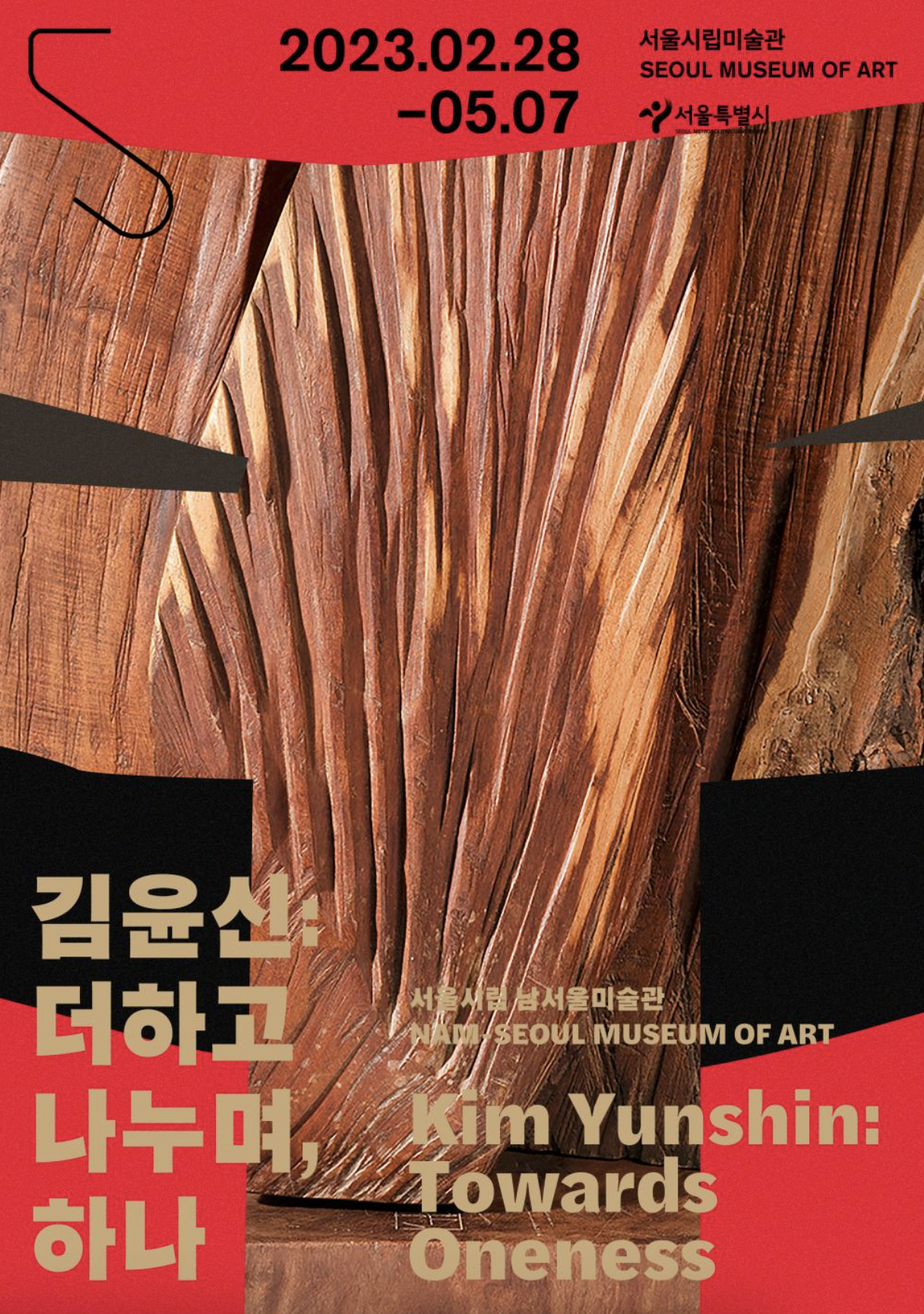 <김윤신: 더하고 나누며, 하나>는 1935년생으로 현재에도 왕성하게 활동하는 한국 1세대 여성 조각가 김윤신의 개인전으로 자연과 우주에 대한 철학적 사고를 반영한 김윤신의 작품 세계를 목조각, 석판화 등 작품 70여 점을 통해 소개합니다. 김윤신은 아르헨티나를 거점으로 활동해 왔기에 국내에는 상대적으로 덜 알려졌으나 재료의 자연스러운 속성을 살리는 무기교의 조형감각은 독창성과 동시에 시대와 지역을 뛰어넘는 보편성을 가집니다. 김윤신의 조각은 작가의 수고스러운 신체 활동을 거쳐 제작된 전통적 방식의 조각으로, 디지털 시대에 희미해진 물질이 주는 실제적 감각의 의미를 되묻습니다.