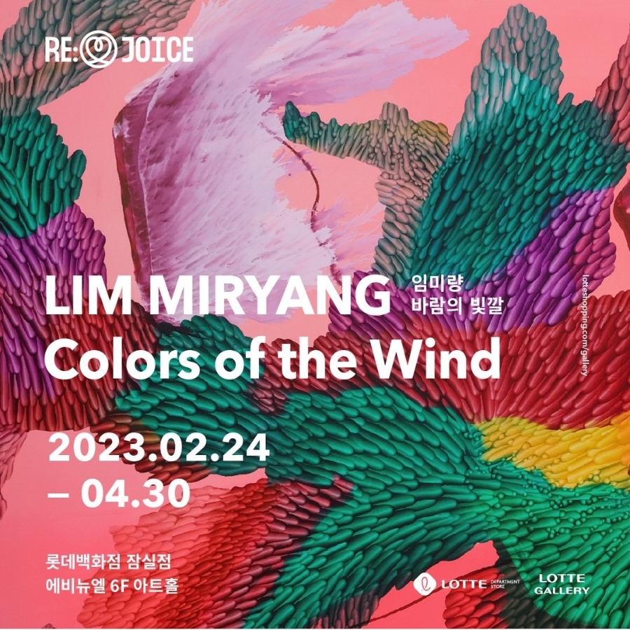 잠실점에서 진행되는 <Colors of the Wind> 전은 작년에 이어 국내 여성 추상회화작가를 조명하며 바람을 모티브로 독창적인 화법으로 주목받고 있는 임미량의 신작 회화를 선보입니다. 지극히 세밀한 형태와 함께 강렬한 색채에서 느껴지는 감정적 효과가 특징적인 임미량의 회화는 기하추상(차가운 추상)과 비정형의 추상(뜨거운 추상) 두 전통 모두에 속하는 것으로, 전례 없던 독특한 이미지로 관람객을 매료시키며 몰입감을 선사합니다. 흡사 현미경으로 본 미세한 입자 같은가 하면 태양 표면이나 성운에서 터져 나오는 폭발처럼 아름다운 우주적 장관을 연상시키기도 하는 임미량의 작품은 극도의 세밀함과 폭발적인 에너지를 동시에 담고 있습니다. 명확한 윤곽으로 그려진 곡선과 색채는 마치 융털과 같은 모양의 다양한 덩어리와 밀도로 뭉쳐져 있고 중간중간 가느다란 힘줄 내지는 실 같은 가닥이 부유하며, 때로는 날개를 연상시키는 기체와 같은 이미지가 특이한 형태로 눈길을 사로잡습니다. <GOING>, <The Performance of Wind>, <My Forest> 등으로 이어지는 연작은 작가의 깊은 내면을 추상적으로 드러낸 것으로 기본적으로 움직임, 즉 확장하는 성질에 기반합니다. 이는 생명체의 자연스럽고 고유한 충동으로 자아를 확장시키고자 하는 인간의 욕구와 나아가 지금 이 순간에도 무한히 팽창하고 있는 우주의 메타포로 읽힐 수 있습니다. 이번 리조이스 캠페인과 함께하는 <Colors of the Wind> 전이 오늘날 다양한 영역에서 그 영향력을 확장해 나가고 있는 여성들에 대한 응원이자 우리 내면에 있던 꿈과 도전의식, 열정을 이끌어내는 촉매가 되길 기대합니다.