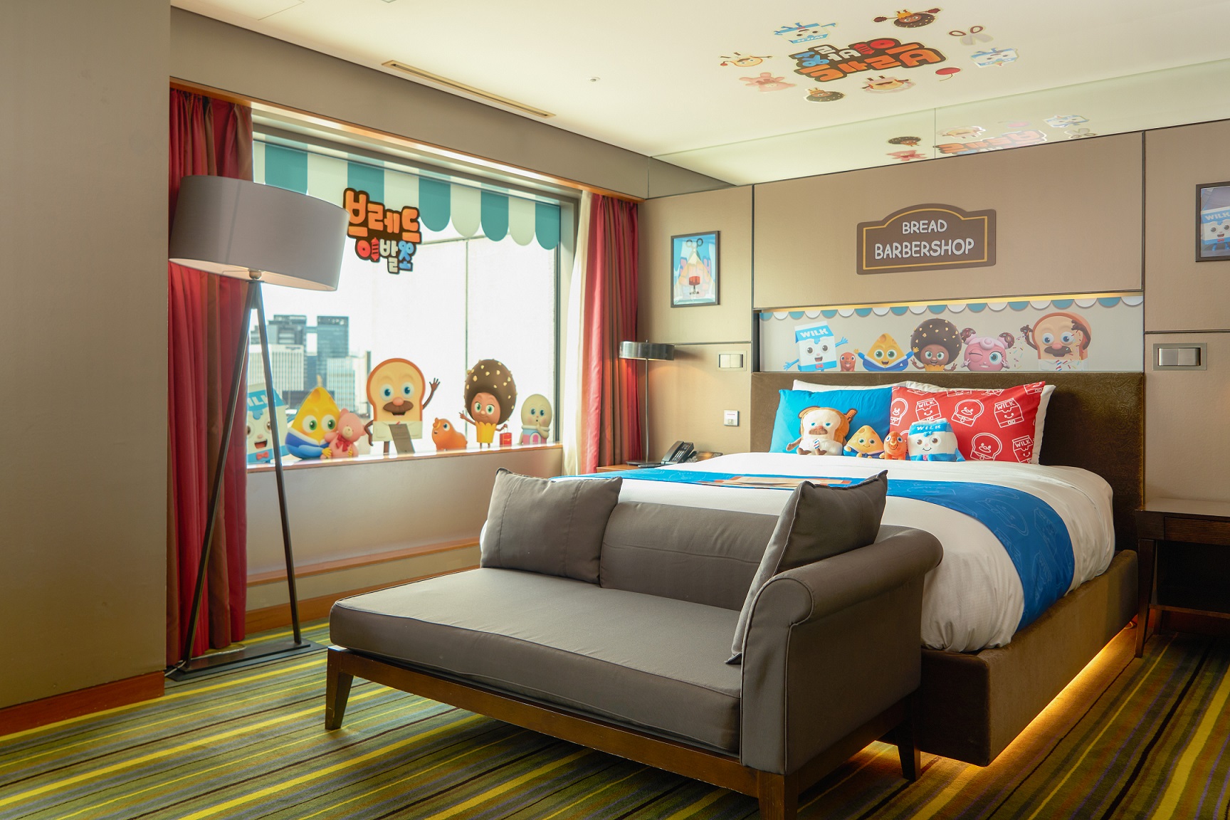 롯데호텔 서울은 인기 애니메이션인 '브레드 이발소'를 테마로 한 캐릭터 룸을 오픈합니다. 객실과 욕실에 베이커리타운의 귀여운 캐릭터들이 장식되어 있고 맞춤형 서비스로 아이들과 가족 모두에게 선물이될 잊지 못할 추억을 안겨줄 것입니다. 키즈 라운지 네 포토박스가 설치되어 있어 사진촬영과 애니메이션을 시청할 수 있는 공간도 준비되었다고 합니다.